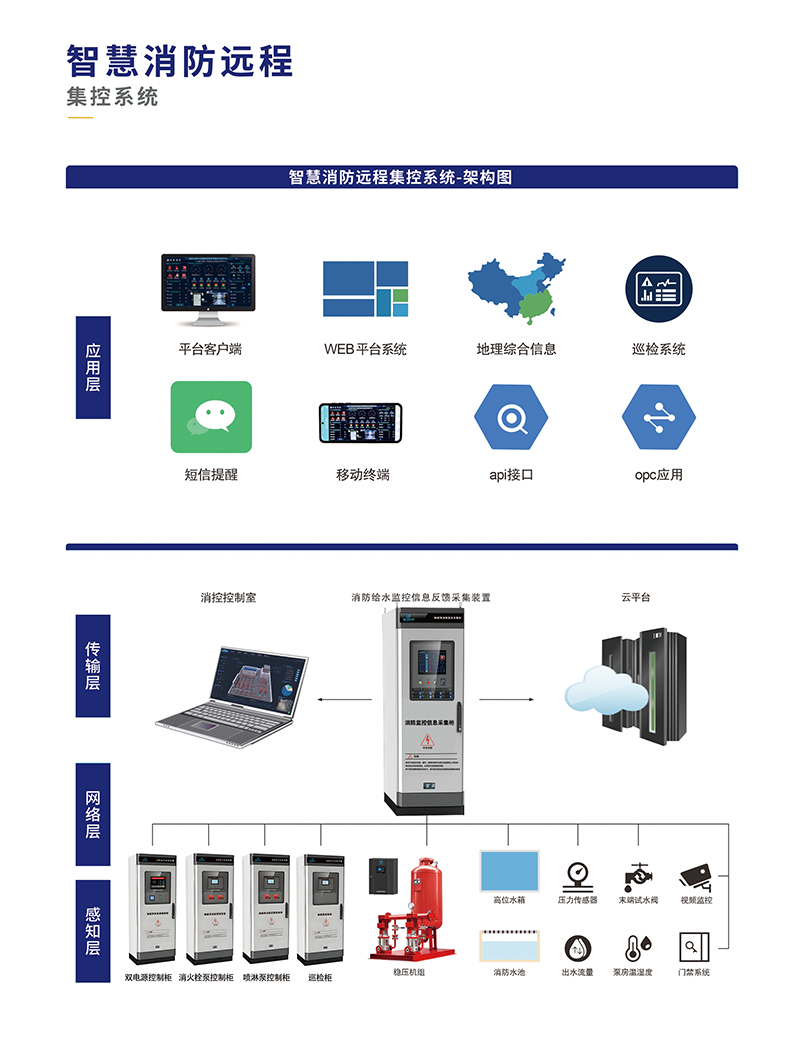 物聯(lián)網(wǎng)消防給水系統(tǒng)通過在消防水泵、管網(wǎng)、水箱等關(guān)鍵設(shè)備上安裝各類傳感器,如壓力傳感器、流量傳感器、液位傳感器等,實現(xiàn)對消防給水系統(tǒng)運行狀態(tài)的實時監(jiān)測。這些傳感器能夠?qū)⒉杉降臄?shù)據(jù),如水泵的啟停狀態(tài)、管網(wǎng)壓力、水箱水位等,通過無線或有線通信網(wǎng)絡(luò),實時傳輸至消防設(shè)施物聯(lián)網(wǎng)云平臺。平臺利用先進的數(shù)據(jù)處理和分析技術(shù),對這些數(shù)據(jù)進行深度挖掘和分析,從而及時發(fā)現(xiàn)系統(tǒng)中存在的潛在問題,并通過智能算法預(yù)測設(shè)備故障的發(fā)生,提前發(fā)出預(yù)警信息。