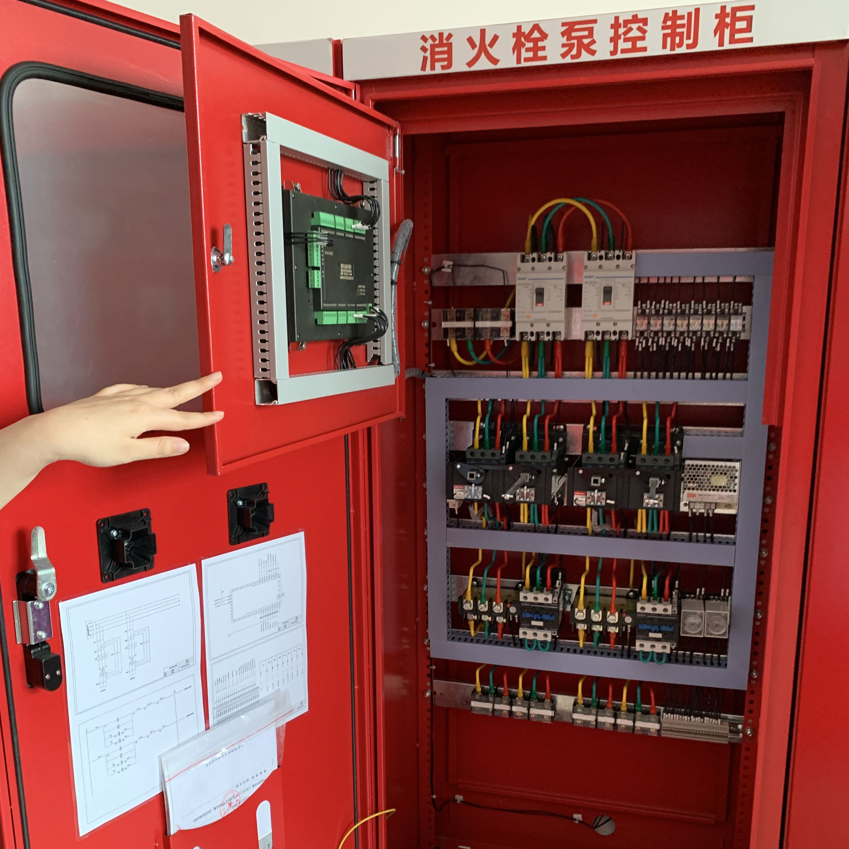 {藍(lán)升消防噴淋泵控制柜}噴淋泵控制柜中應(yīng)為消防報(bào)警系統(tǒng)預(yù)留無(wú)源觸電信號(hào),自動(dòng)噴淋水泵控制柜應(yīng)可接受泵組出口水管上的壓力傳感器的壓力變送信號(hào),當(dāng)壓力低于穩(wěn)壓泵啟動(dòng)壓力值時(shí),控制柜發(fā)出指令開啟穩(wěn)壓泵,當(dāng)系統(tǒng)達(dá)到壓力設(shè)定值時(shí),關(guān)閉穩(wěn)壓泵。噴淋泵除了具備遠(yuǎn)程直啟以外,還有模塊啟動(dòng)功能,就是在柜子上要加控制模塊總線聯(lián)動(dòng)起泵,另外還要有壓力開關(guān)直接起泵功能,共三種功能。