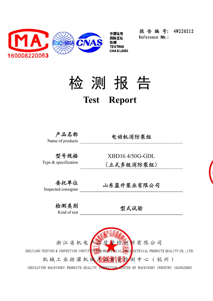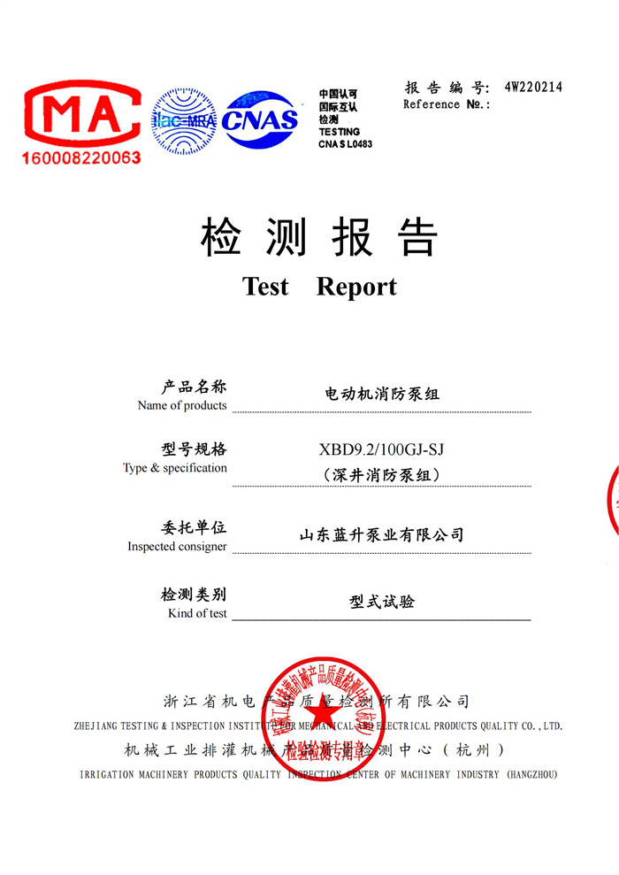 消防泵檢驗報告
