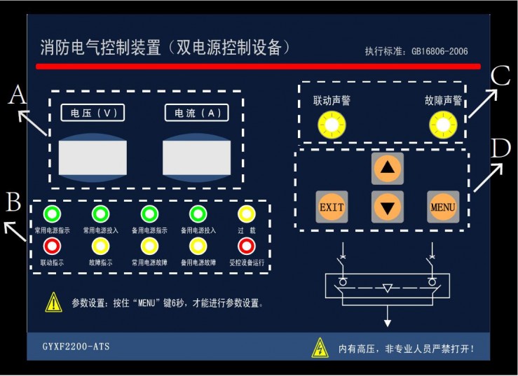 (5)、控制器內(nèi)置三相相序和缺相檢測功能。(此功能GYXF2200-ATS/B型支持)